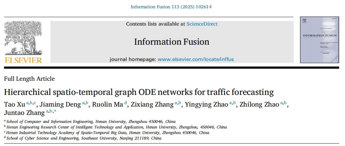 近日,计算机与信息工程学院教育大数据团队在图表示学习领域连续取得重要研究进展,研究成果一以“Hierarchical Spatio-temporal Graph ODE Networks for Traffic Forecasting”为题在计算机科学学科TOP期刊《Information Fusion》(IF=15.5)上发表;研究成果二以“SQGKT: Student-Question Interaction Graph-based Knowledge Tracing”为题在计算机科学学科TOP期刊《Expert Systems with Applications》(IF=7.5)上发表。