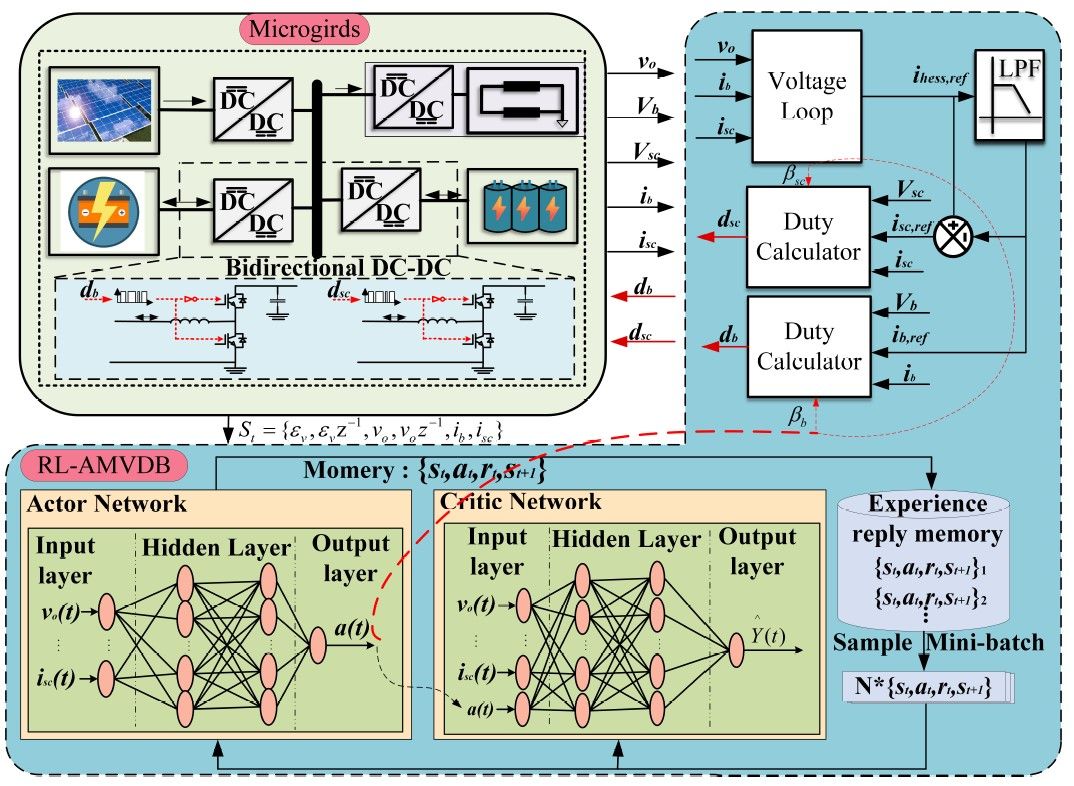恒功率负载(CPL)和模型失配问题会导致直流微电网中出现显著的电流纹波和电压波动,这对储能系统的控制方法提出了巨大挑战。针对直流微电网中恒功率负载和模型失配带来的电流纹波和电压波动,团队提出了基于强化学习的主动模型失配无差拍控制方法(RL-AMVDB)。