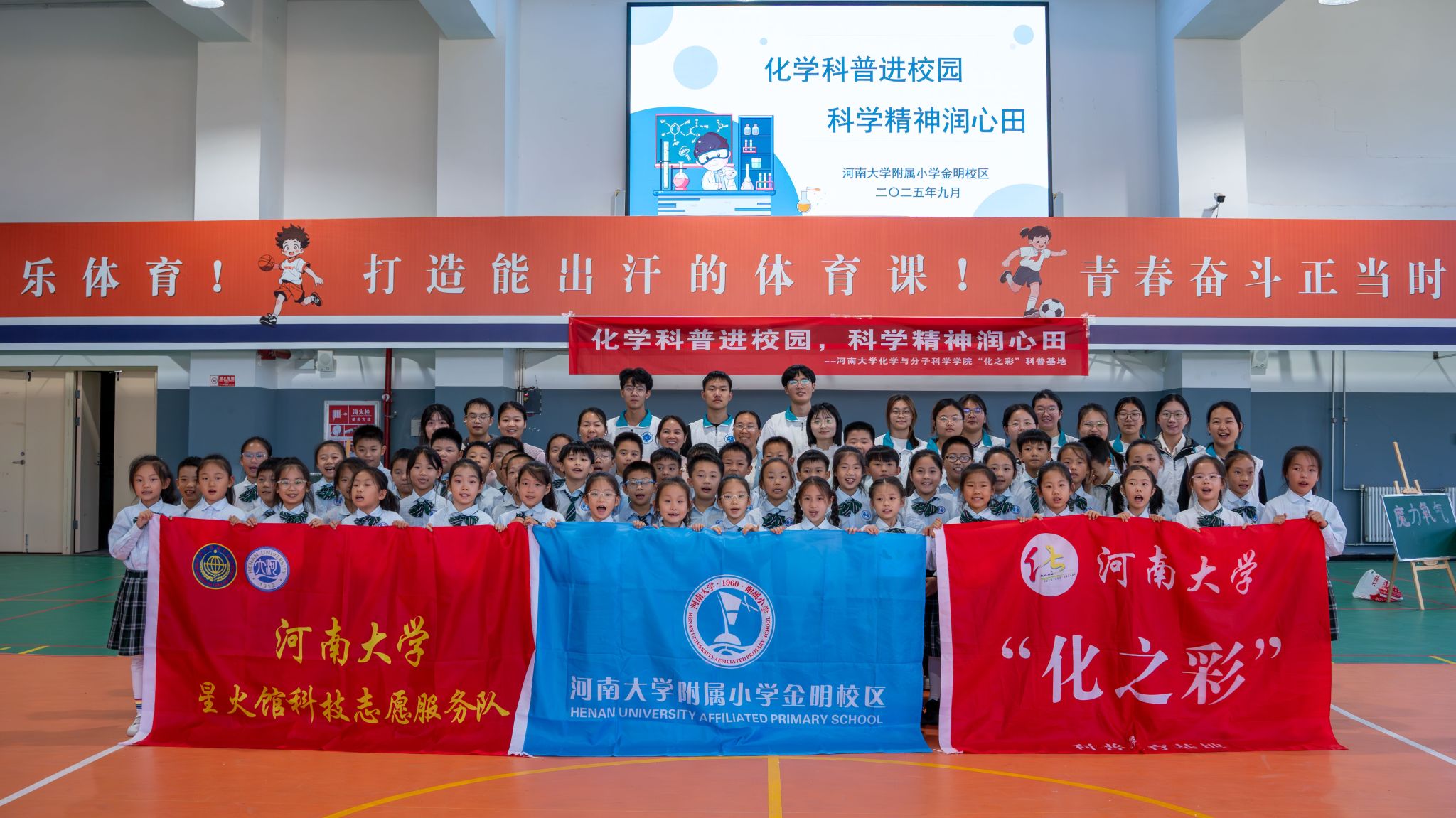 在2025年全国科普月期间,为深入贯彻落实科技创新与科学普及协同发展要求,助力青少年科学启蒙教育,9月25日,化学与分子科学学院在新葡萄8883国际官网附属小学成功举办“化学科普进校园”活动。此次活动由化学与分子科学学院团委副书记田梦带队,依托学院“化之彩”科普教育基地与星火馆科技志愿服务队,通过趣味实验与互动体验,为小学生们带来了一场生动的化学知识盛宴。