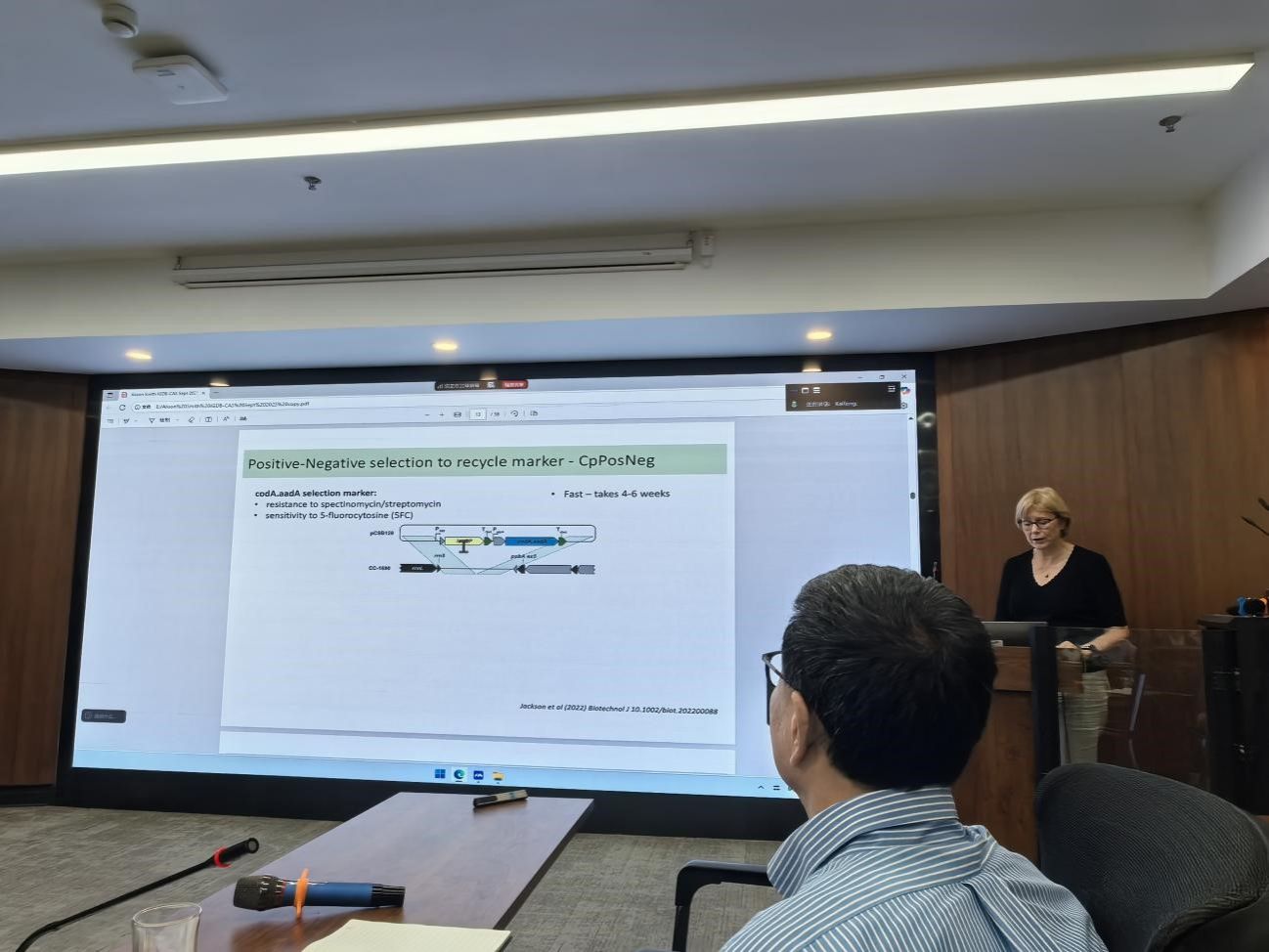 9月17日,实验室邀请英国剑桥大学植物科学系Alison Smith教授作“如何设计叶绿体及其意义”的科普报告。Alison Smith教授从事合成生物学研究,她的研究重点在于植物代谢,特别是微藻的代谢工程。本次报告中,她主要利用藻类(如莱茵绿藻Chlamydomonas reinhardtii)的叶绿体作为测试平台进行合成生物学工作。Smith团队使用同源重组、同源整合和模块化克隆工具创建合成操纵子、最小基因组或多基因构建,通过重新设计,构建了多个版本的人工合成叶绿体(CpSynBio)。该研究旨在通过精简和重新设计叶绿体基因组(plastome)来彻底重塑植物代谢途径,以应对全球粮食安全和可持续发展挑战。
