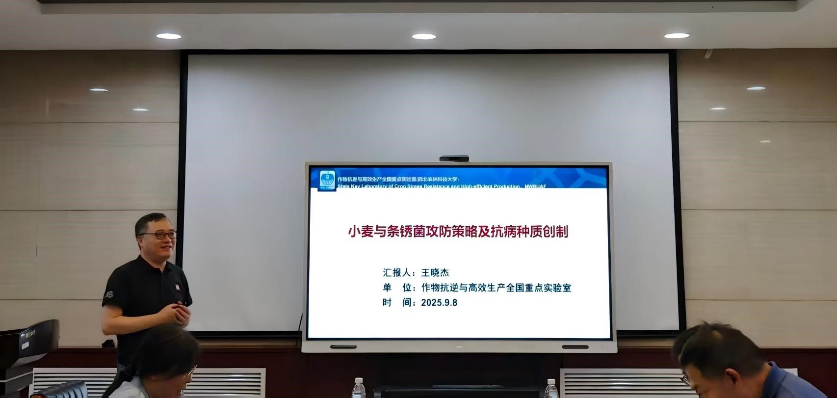 9月9日,西北农林科技大学王晓杰教授受邀在棉花生物育种与综合利用全国重点实验室301会议室作题为“小麦与条锈菌攻防策略及抗病种质创制”的科普报告。王晓杰教授在报告中讲述了条锈病的危害以及条锈病流行的根本原因。重点阐述了小麦与条锈菌的攻防策略机制,例如活性氧平衡、操纵感病基因。基于小麦与条锈菌的攻防策略,其团队通过阻断病菌操纵寄主免疫、过表达小麦抗性基因增强寄主免疫、编辑感病基因破坏条锈菌对小麦操纵等策略创制了多份抗病新材料。