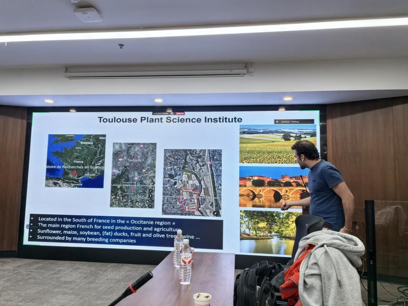 10月24日,实验室法国国家科学研究中心、图卢兹植物科学研究所Jean-Malo Couzigou研究员作“NOOT和EcfG调控大豆根瘤发育”的报告。Couzigou的研究工作聚焦豆科植物(大豆等)与根瘤菌形成共生根瘤的发育。在本次报告中,Couzigou研究员报告了2个根瘤发育重要因子的作用:NOOT(Nodule Root)基因在植物中维持根瘤的身份并抑制根身份表达,在noot突变体中,根瘤顶端形成异位根;EcfG是细菌中调控应激响应(GSR)的因子,帮助细菌应对感染过程中的环境胁迫,也参与调控根瘤向根状结构转化。该工作揭示了NOOT和EcfG如何协同控制大豆根瘤发育,以提升作物氮利用效率和可持续农业。此外,Couzigou还报告了他领导的PIA SOYSTAINABLE项目,聚焦于开发本地可持续的大豆蛋白来源,计划通过遗传改良提升大豆耐寒性和蛋白质质量,进行大规模田间试验,并开发商业化品种,以应对气候变化挑战和提升法国大豆产业的可持续性和韧性。