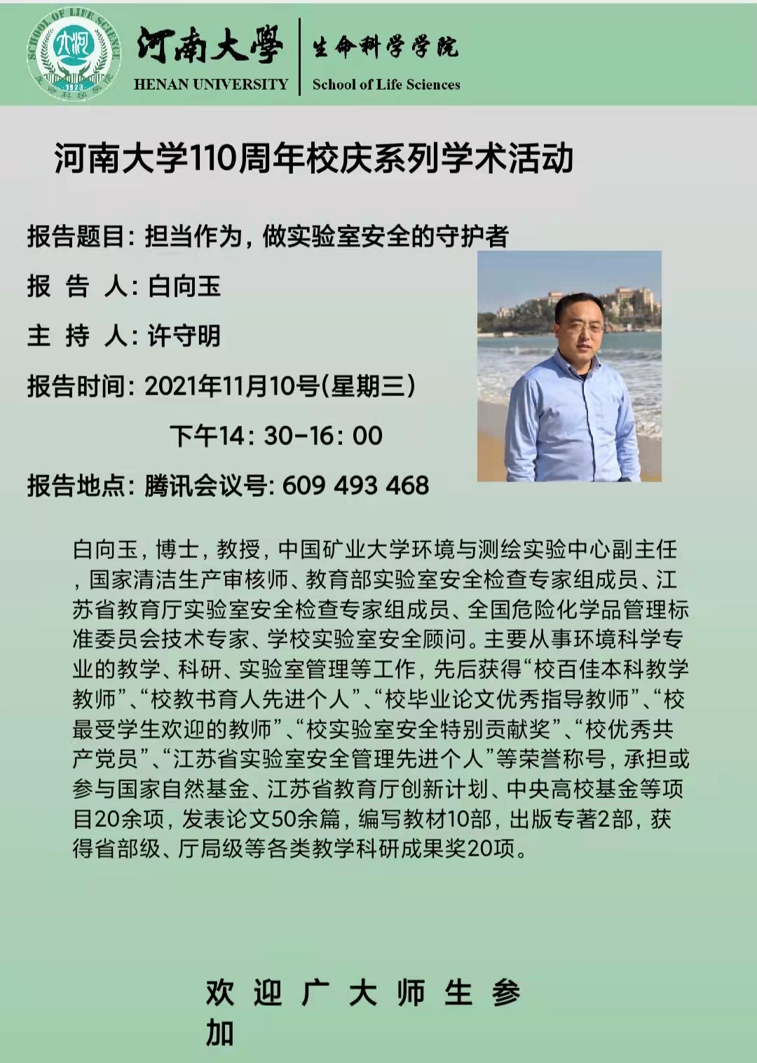 网络讲座:白向玉:担当作为,做实验室安全的守护者(11.10)